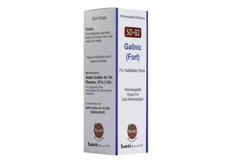 SD-82 Gallnic (Fort): A homeopathic remedy that stimulates liver and gallbladder activity, aiding in the optimal functioning of these organs. It promotes healthy bile production, assists in the breakdown of fats, and supports gallstone particle elimination. Beneficial for liver detoxification and maintaining gallbladder health.
